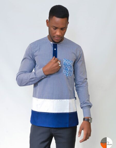 Cette chemise en coton suisse incarne le chic et le raffinement, agrémentée d’une magnifique portion de pagne tissé pour une touche d’authenticité africaine.